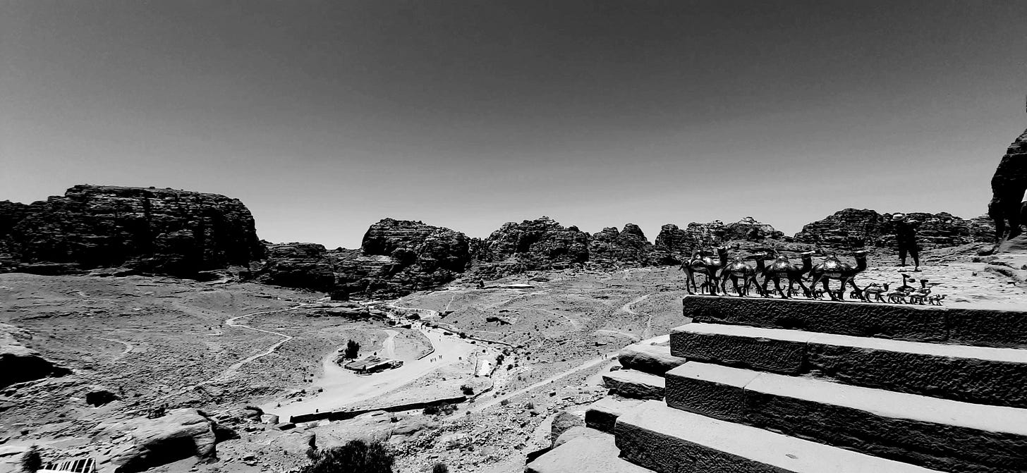 Great piece, I loved how emersive it was. It really took me back to my time in Petra. I totally get what you mean about the mental image being "more imagined than existing" I had a similar experience where I found the Treasury anticlimactic (I preferred the Monastery) entirely because of my childhood obsession with Indian Jones (I even studied Anthropology at uni). I think it's also why I resist researching places before I travel now - I like my travel cold like my coffee. Thank you so much for introducing me to Baudrillard, I am gonna have to read up on the theory of simulacrum.